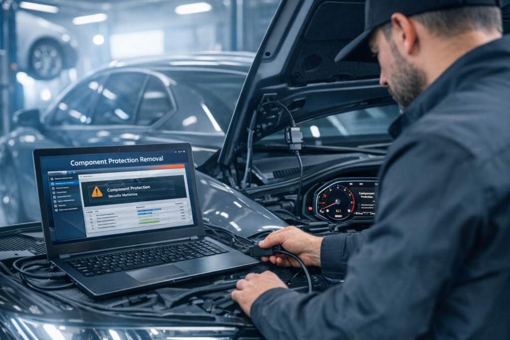 Component Protection is a security feature used in modern VAG vehicles to prevent theft and unauthorized installation of electronic components. When a protected module is installed in another vehicle, the system detects a mismatch and limits its functionality.
